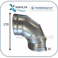 Coude à 90° en acier galvanisé pour réseau de ventilation
