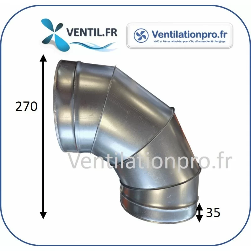 Coude en acier galvanisé pour le changement de direction à 90 degrés d'un réseau aéraulique (ventilation ou extraction de hotte de cuisine). Un article indispensable pour vos réseaux de ventilation.
